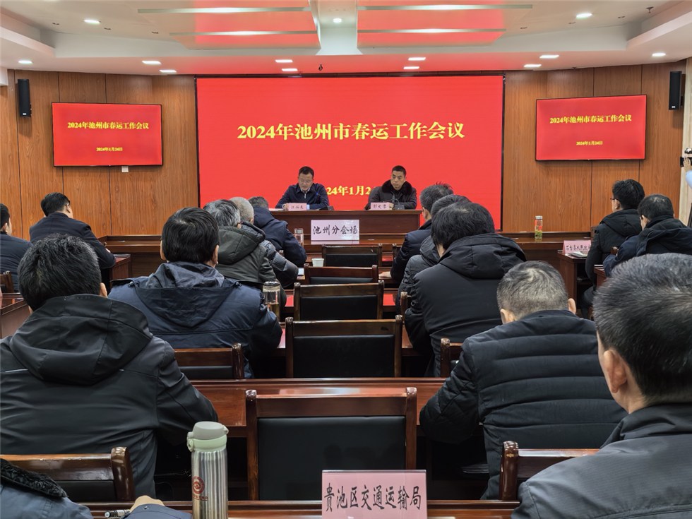 1月24下午,池州市召开2024年全市春运工作会议,会上组织收听收看全国、全省春运工作电视电话会议,分析研判我市春运工作形势,部署我市2024年春运工作。市政府副秘书长江兴来出席会议并讲话,各县区政府、管委会及市春运工作领导成员单位分管负责同志,各县区交通运输部门主要负责同志及局直各单位主要负责人参加会议。