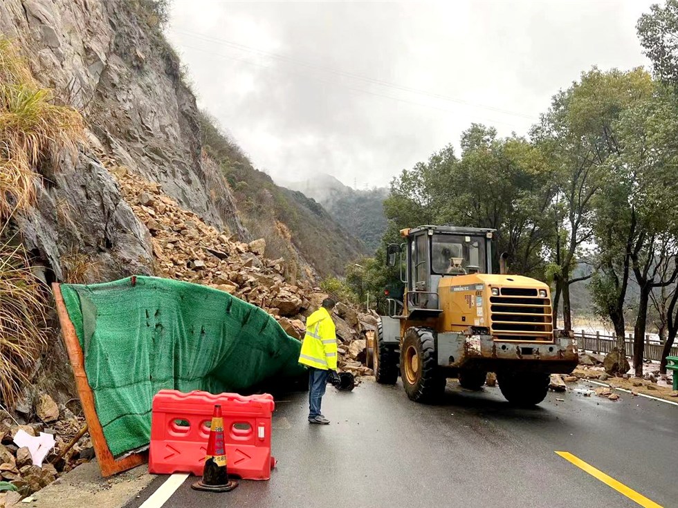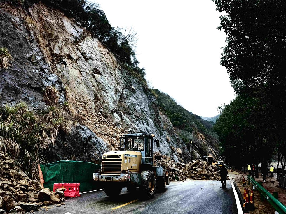 受强降雨影响,2月21日上午5时许,石台县境内G237济宁线K815+310米处左侧路堑上边坡石质边坡发生塌方,约1000余立方米塌方体倾覆在路面,阻断道路交通。