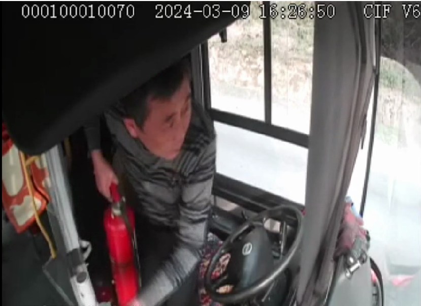 王可松靠边停稳车辆,迅速解开安全带,提起身边灭火器,奔向着火车辆,迅速打开灭火器安全栓,对准车辆着火点进行全方位、全覆盖的灭火。随后,他再次返回车上,拿起水桶,对准车辆着火点进行复灭。在确保险情彻底消除后,才放心离开。次日,大货车车主致电市城市公交公司,对驾驶员的见义勇为行为表示感谢。