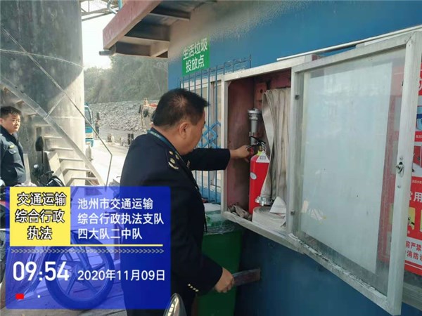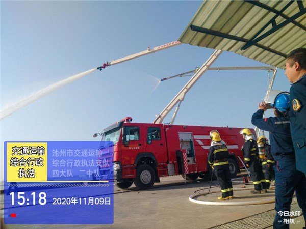 宣传日当天,二中队执法人员分成两组,一组对东流港区茅屋街、安东码头等开展消防安全检查,发现不符合要求的消防设施,要求立即或限期整改;另一组执法人员实地参加了“池州东至广信农化有限公司”、“安徽华尔泰化工有限公司"等港口企业的消防演习。通过开展一系列消防宣传活动,营造浓厚的宣传氛围,提高了港口运输企业和从业人员的消防安全意识。