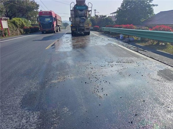 由于污染面积大,简单冲刷并不能完全去除油污,养护人员首先运来沙土对油污进行覆盖和吸附,进行简单处置,然后安排洒水车辆将路面打湿,并将清洁剂撒在地面上,对油污处进行浸泡,待油污充分溶解后,再安排洒水车进行冲刷,最后由用扫帚往返一点点清洗,还原道路洁净面貌。