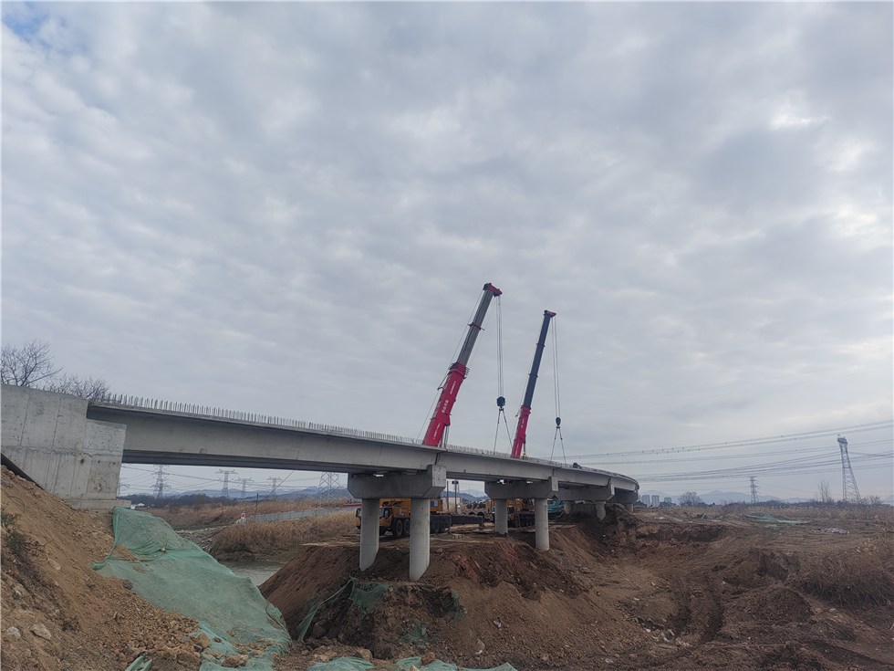12月31日,随着最后一片梁板稳稳落在桥墩上,X202童朱路镇元桥21片梁板吊装工作结束,标志着桥梁主体工程全面完成,也意味着离该桥建成通车又近了一步。