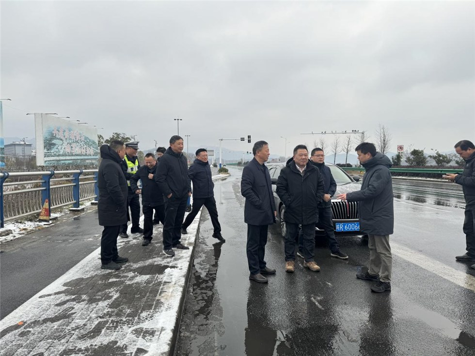 在东尧一级路泉水湖2号桥现场,东至县委主要领导听取了东至分中心主要负责人对桥面防滑措施落实、除雪设备部署、安全警示标识设置等情况的汇报,详细询问了桥梁日常养护、雨雪天气巡查频次及应急处置预案等工作。东至县委主要领导指出,东尧一级路是舜城新区交通出行的关键枢纽,必须牢牢守住安全底线,密切关注天气变化,提前预判雨雪冰冻对桥梁通行的影响,加密巡查频次,对桥梁伸缩缝、桥面排水、急弯陡坡等关键部位逐一排查,及时消除安全隐患,确保雨雪天气下国省干线公路安全畅通。