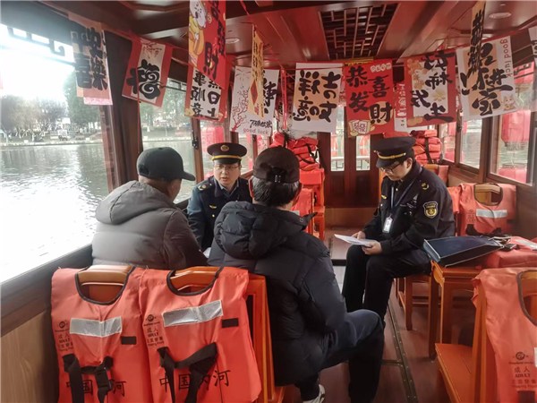 在乡镇渡口和清溪河游船码头,执法人员一是利用渡运间隙开展宣教活动,结合乡镇渡船船员实际情况,通过发放印制的宣传单页,将《涉客船舶船员行为规范(试行)》中关于日常行为规范、航行作业流程、禁止性规定等内容,转化为通俗易懂的“大白话”,重点强调“严禁酒后驾船、严禁疲劳驾驶、严禁抢航抢头、严禁航行中玩手机”等规定;二是针对游船载客量大、社会关注度高的特点,执法人员向游船驾驶员逐条解读《涉客船舶船员行为规范(试行)》中的船员岗位职责、乘客上下船安全引导及突发情况应急处置等内容,同时结合典型事故案例进行警示教育;三是现场核查船员的适任情况,对船舶的救生衣、救生圈的配备情况以及船舶安全状况进行细致检查。