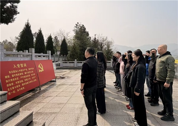 活动最后,全体党员面向党旗举起右拳,集体重温入党誓词,铿锵誓言回荡陵园,坚定了对党忠诚、为民服务的理想信念。